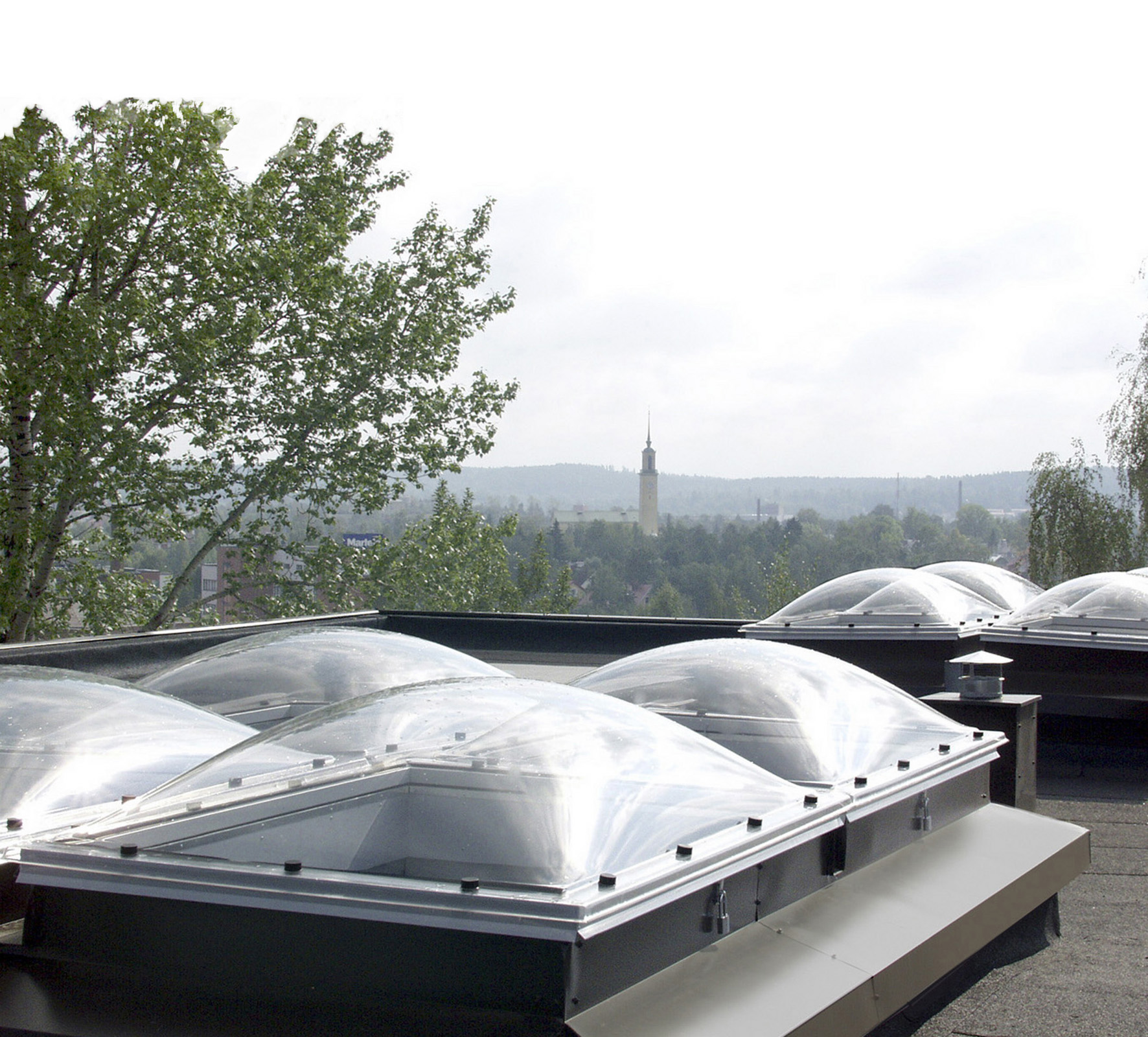 Våra kupoler kommer från välkända Keraplast i Finland. Välvningen är högre och godset i ytterglaset är tjockare än vad som annars är normalt på marknaden. Vi kan erbjuda hundratals olika diametrar, bredder och längder.